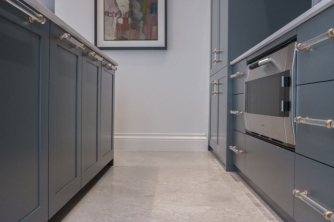 Kitchen features Gaggeneau appliances that include an oven, microwave oven, gas hob, custom made brass extractor, wine cooler, fridge / freezer, extra-wide stainless steel sink and dishwasher.